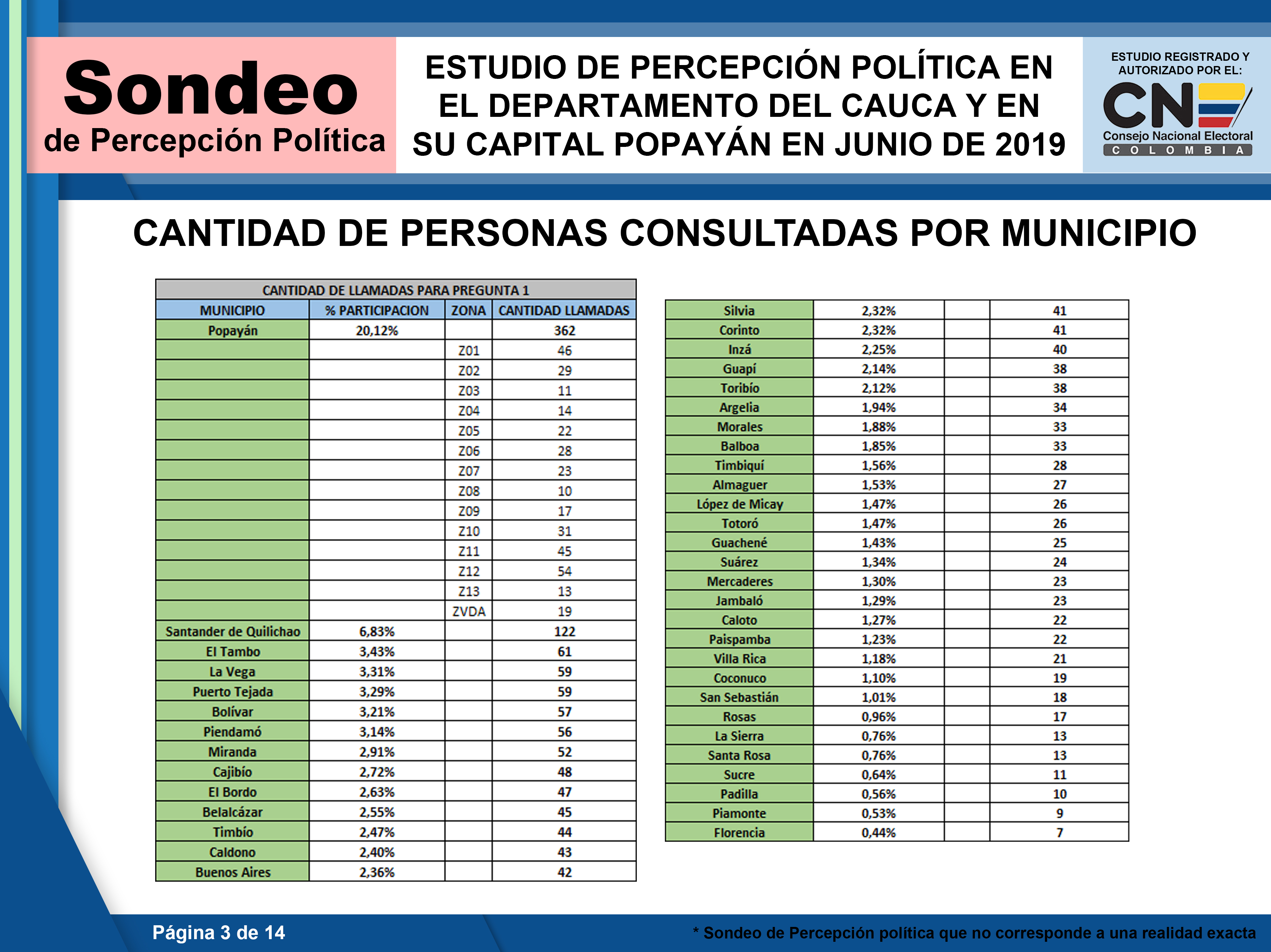 Primer Gran Medición de afinidad política para las elecciones de Octubre de 2019 en el Departamento del Cauca